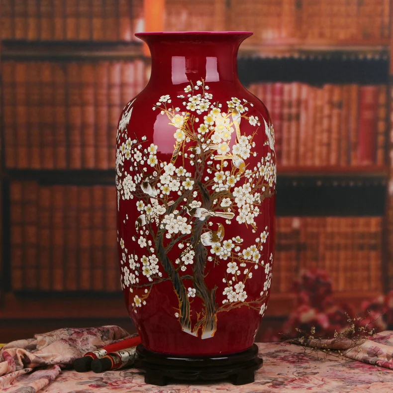 Amazon Com Red Antique Ceramic Vase With Base Traditional Porcelain Chinese Vase Modern Decorative Vase Oriental Vase Decorative Home Centerpiece Chinese Vase B H26cmxw15cm Home Kitchen