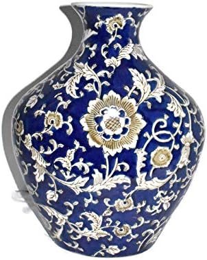 Amazon Com New 14 Ornate Flowers And Filigree Leaves Cobalt Blue White Hourglass Shaped Oriental Decorative Vase Home Kitchen