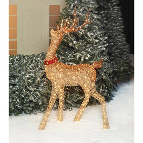 Northlight 25 In Lighted Gold Sisal Prancing Reindeer Christmas Outdoor Decoration 31466981 The Home Depot
