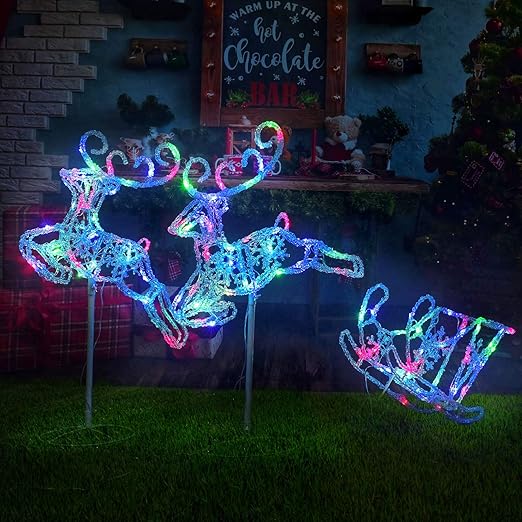 Amazon Com Pre Lit Light Up Christmas Double Reindeer And Sleig Lawn Ornament Waterproof Led Lights Indoor Outdoor Yard Christmas Holiday Lawn Decoration Multicolor Garden Outdoor