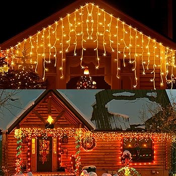 Amazon Com 33ft 400 Led Icicle Lights Outdoor Christmas Decorations Lights Outdoor Eaves Curtain Lights With 75 Drops 8modes Led Hanging Waterfall Lights Decor For Christmas Thanksgiving Halloween Home Kitchen