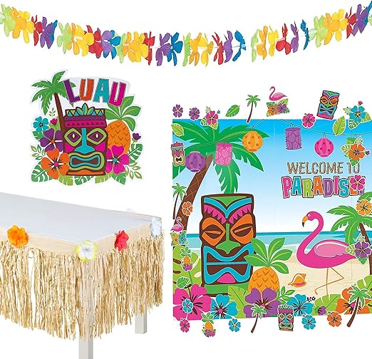 Amazon Com Party City Tropical Luau Decoration Kit Party Supplies Includes Table Skirt Scene Setter And Garland Kitchen Dining