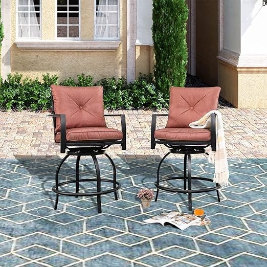 Amazon Com Patiofestival Swivel Bar Stools Patio Height Bistro Chairs Set Of 2 Pcs Outdoor Conversation Sectional With Armrest All Weather Steel Frame 2 Chairs Red Garden Outdoor