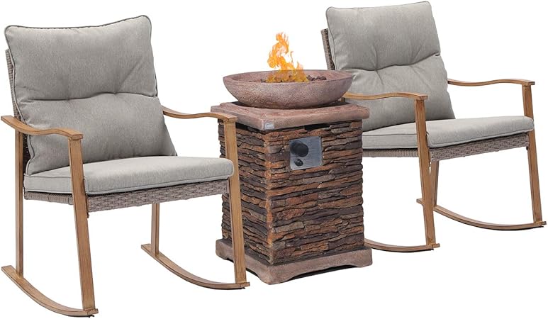 Amazon Com Cosiest 4 Piece Outdoor Patio Furniture Rocking Chairs W 20 Inch Square Propane Fire Pit Table 40 000 Btu Fits 20gal Tank Inside Warm Gray Cushions Round Glass Top Table For Garden Backyard