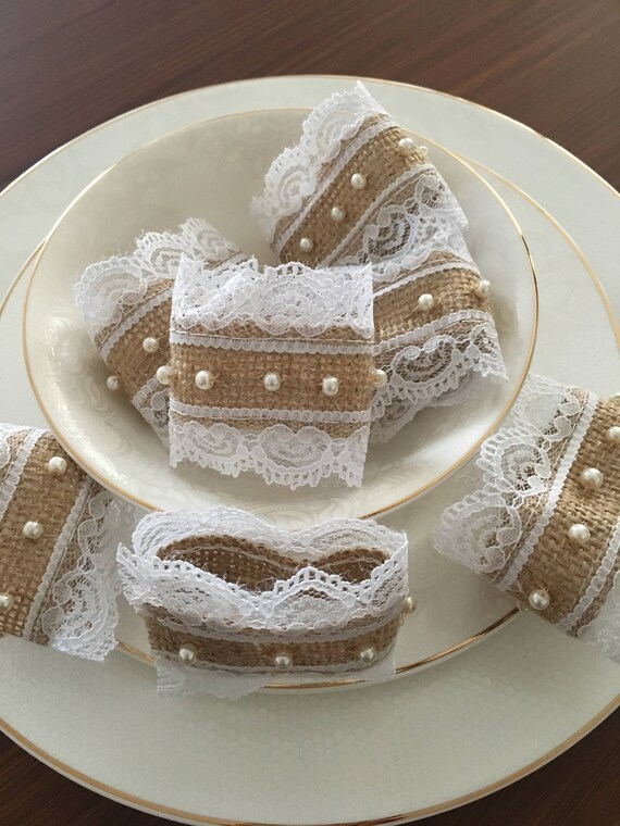 Pearl And Lace Napkin Rings Rustic Wedding Decorations Set Etsy