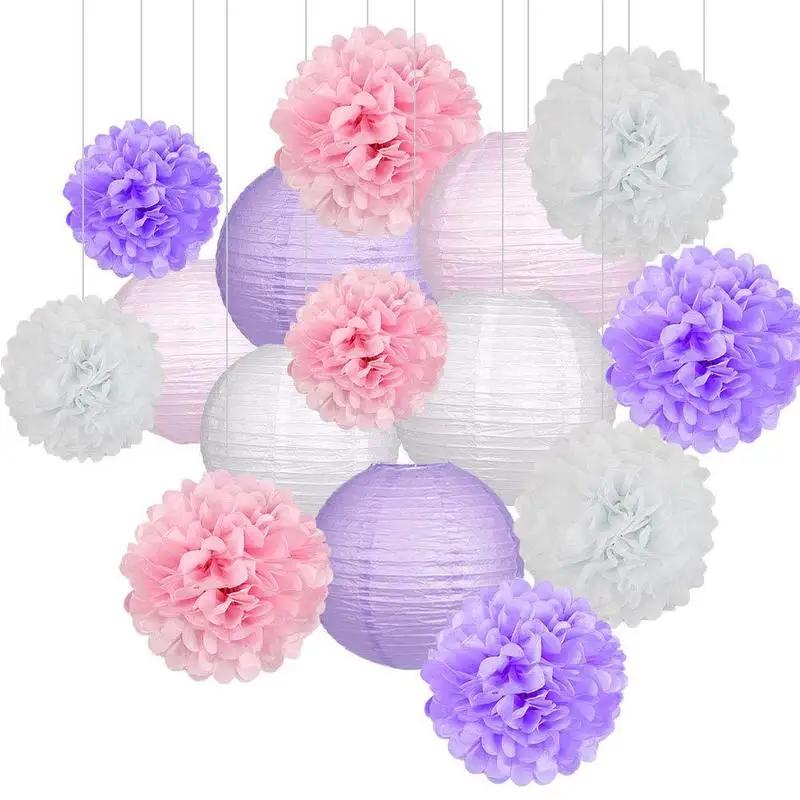 Amazon Com Paper Flower Tissue Pom Poms Baby Shower Party Favors Pink Purple White 18pc Home Kitchen