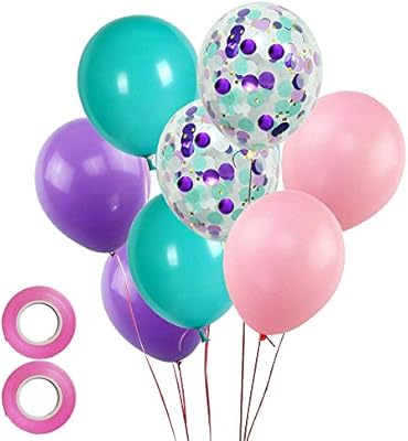 Amazon Com Mermaid Party Balloon 50 Count Lavender Turquoise Pink Latex Balloons And Confetti Balloon For Girl S Mermaid Birthday Party Baby Shower Decoration Toys Games