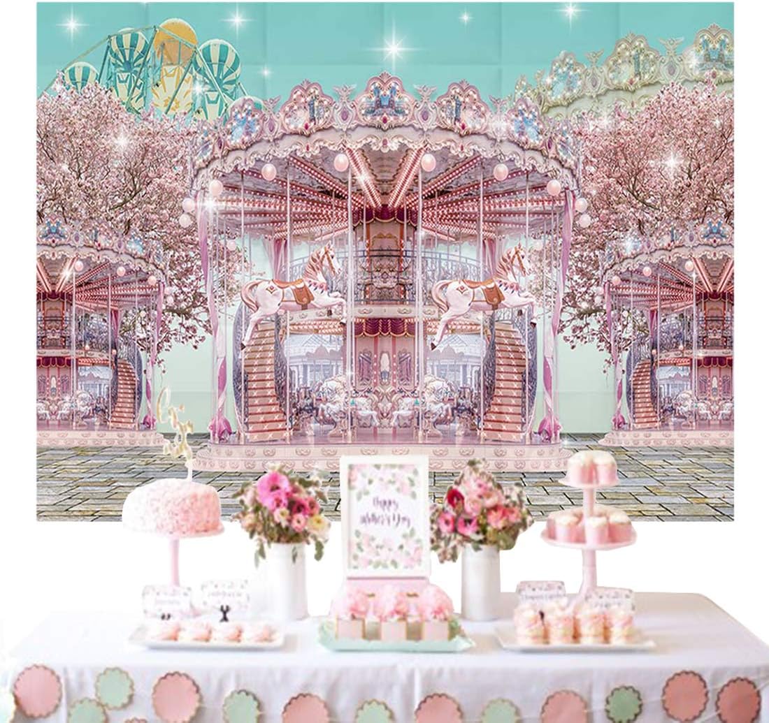 Amazon Com Allenjoy 7x5ft Pink Carnival Backdrop Carousel Ferris Wheel Circus Brick Floor Pink Glitter For Girl First 1st Birthday Party Photography Event Table Decor Banner Background Baby Shower Photo Booth