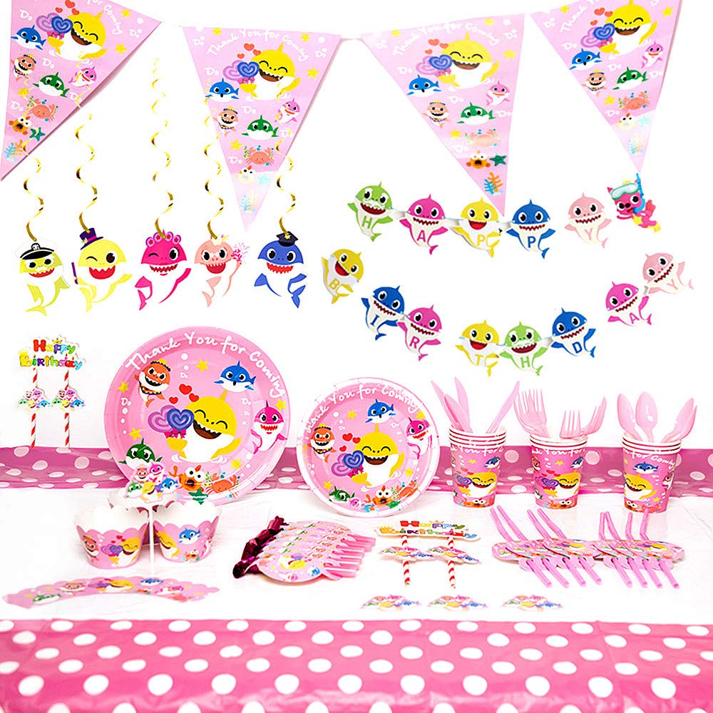 Baby Cute Shark Pink Theme Party Supplies Set 138 Pieces Shark Baby Birthday Party Decorations Shark Party Tableware Cake Topper Banners Kids Birthday Carnival Party Supplies Decoration Buy Online In Jamaica At Desertcart