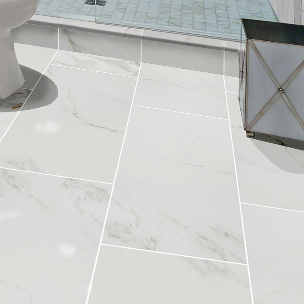 Polished Porcelain Carrera White Wall Floor Tiles Marble Effect 600x600 60x60 Ebay Like The Way The Tiles A Tile Floor Wall And Floor Tiles Marble Effect