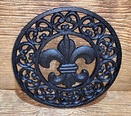 Amazon Com Antique Primitive Home Decor Diy Projects Cast Iron Antique Black Fleur De Lis Trivet Kitchen Decor 7 3 4 Round Home Kitchen