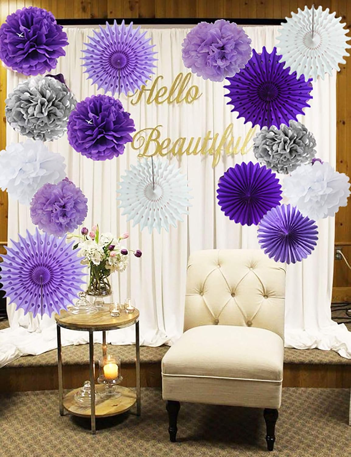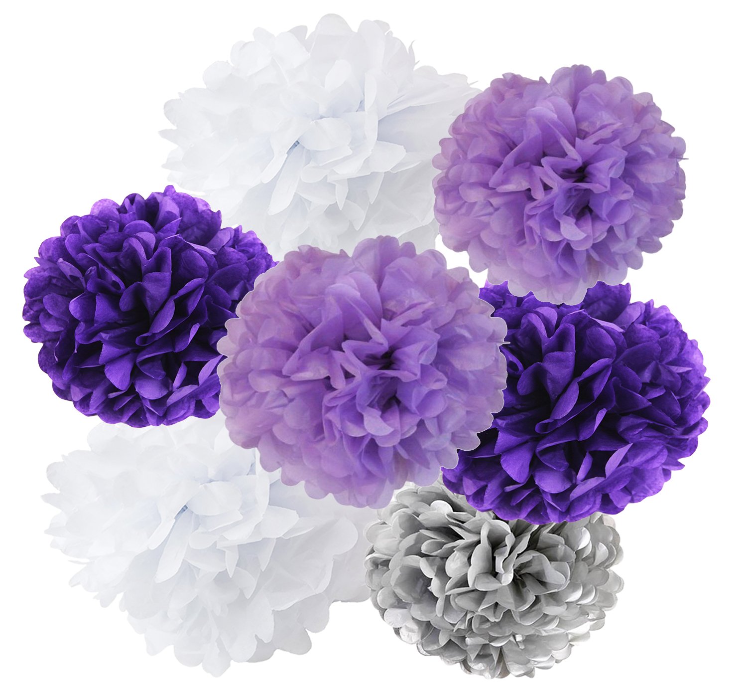 Tissue Pom Poms Bridal Shower Decorations Purple White Silver Tissue Pom Pom Wth Amaranth Purple White Tissue Paper Fans For Lavender Baby Shower Decorations Purple Birthday Party Decorations Qian S Party Home Kitchen