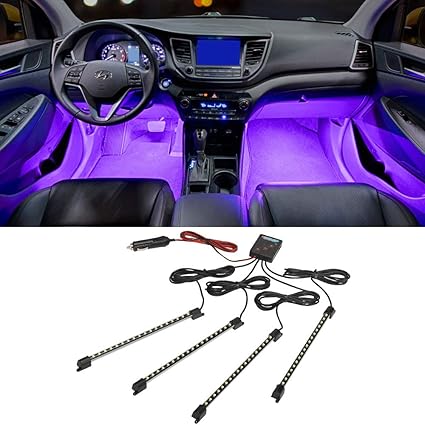 Amazon Com Fochutech Led Car Atmosphere Lights Interior Floor Decorative Strip Waterproof Glow Neon Lamp Light Kit Motorcycle Purple Four In One Automotive