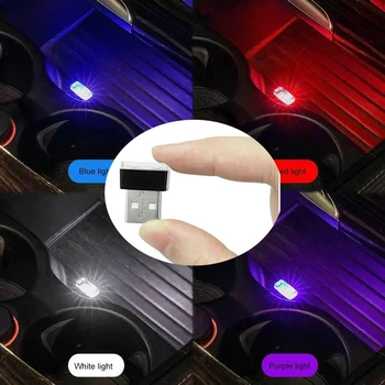 Mini Usb Purple Led Car Interior Light Neon Atmosphere Ambient Lamp Universal
