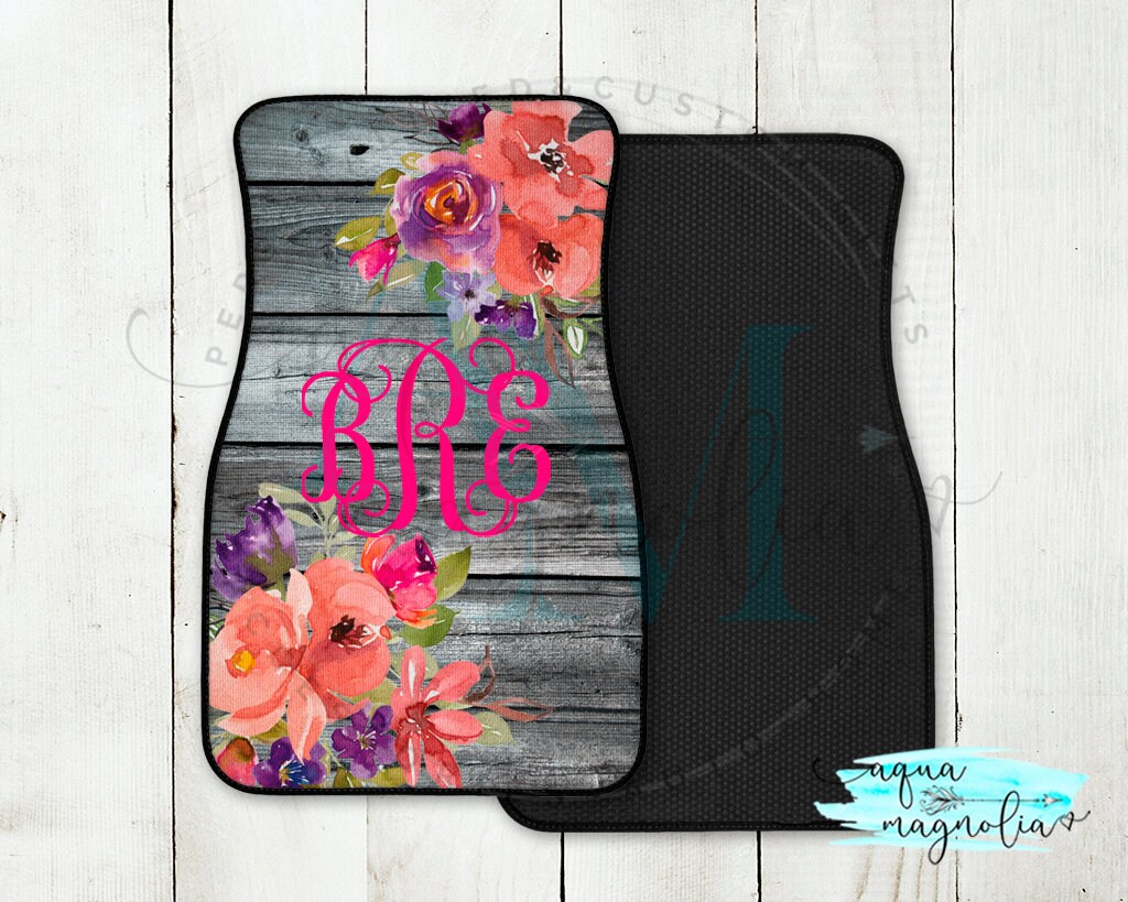 Monogrammed Coral And Purple Car Mats Personalized Car Mats Etsy