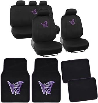 Amazon Com Bdk 13pc Butterfly Purple Combo Auto Interior Gift Set Seat Covers And Matching Carpet Floor Mats Automotive