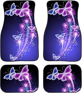 Amazon Com Uniceu A Set Of 4 Universal Fit 3d Butterfly Print Carpet Floor Mats For Cars Suvs Trucks Or Sedans Purple Clear Butterflies Automotive