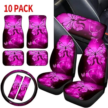 Amazon Com Cozeyat Purple Butterflies Seat Covers Rubber Car Floor Mats Auto Center Console Pad Cover Car Belt Strap Cover Steering Cover Universal Seat Covers 10 Piece Automotive