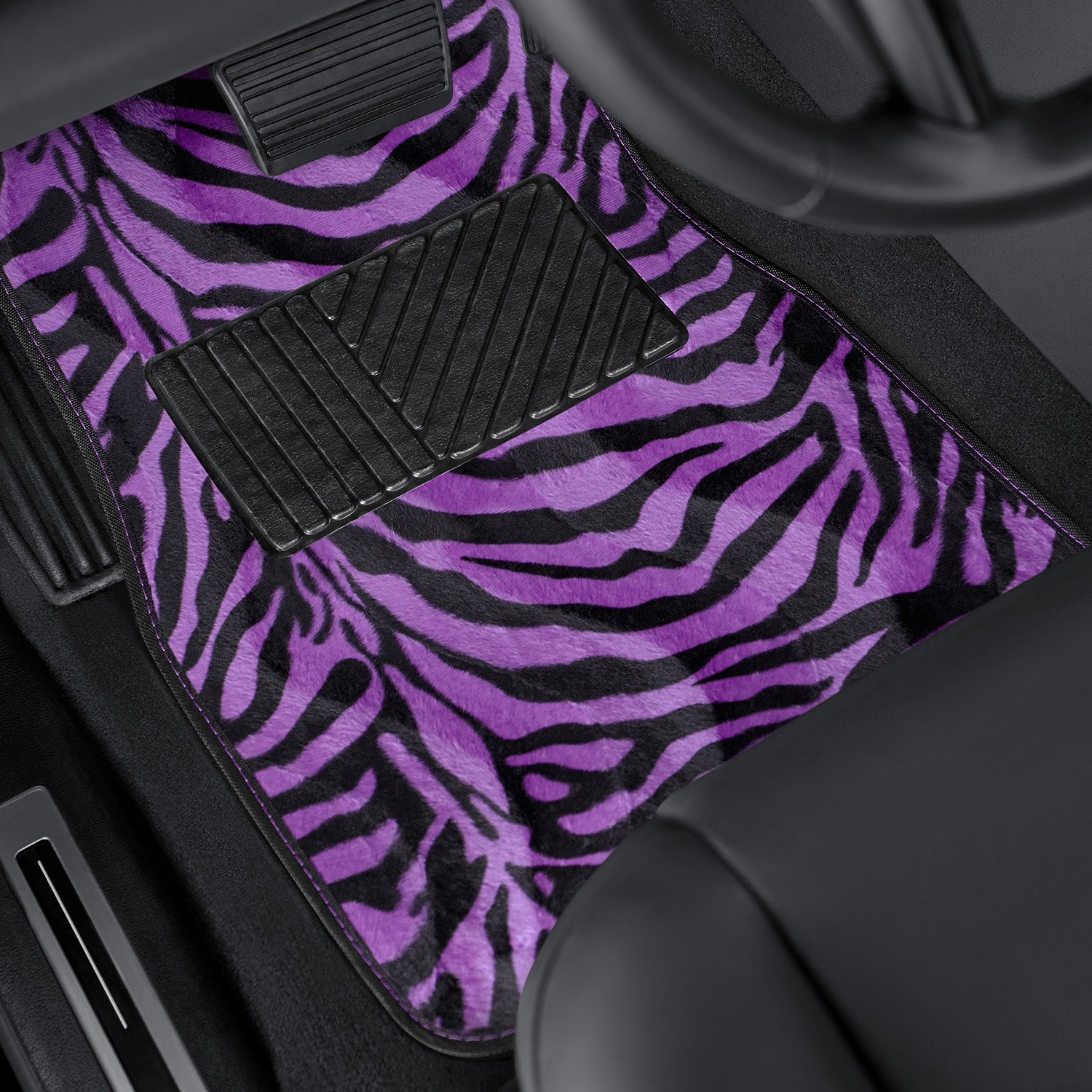 Oxgord Fmcp Z1 Pp Zebra Tiger Stripe Style 1st 2nd Row Purple Black Carpeted Floor Mats Set With Heel Pad