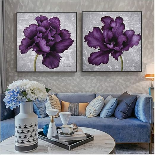 Amazon Com Xiongsheng Modern Wall Art Abstract Purple Flower Canvas Painting For Living Room Bedroom Elegant Plant And Print 80x80cm With Frame Purple Posters Prints