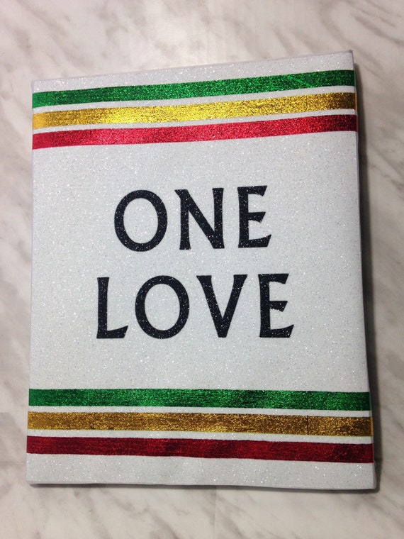 One Love Canvas Art Glitter And Foil Rasta Decor Etsy