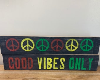 Rasta Wood Signs Good Vibes Only Peace Sign Wood Art Etsy Wood Signs Making Signs On Wood Good Vibes Only