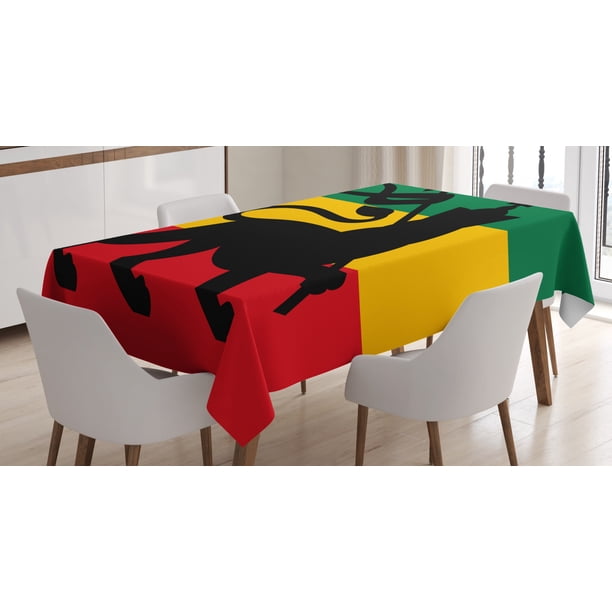 Rasta Tablecloth Rastafarian Flag With Judah Lion On Reggae Music Inspired Decor Image Rectangular Table Cover For Dining Room Kitchen 52 X 70 Inches Black Red Green And Yellow By Ambesonne