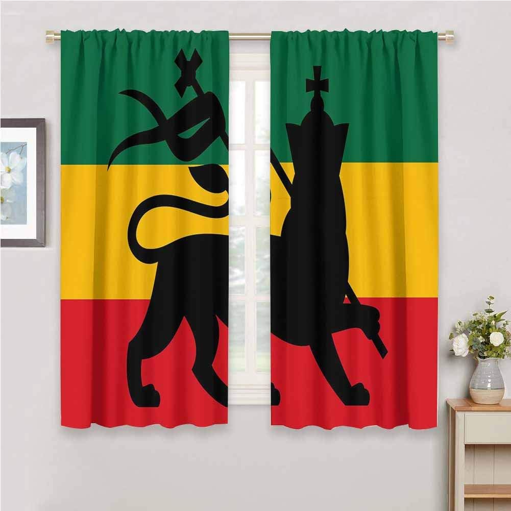 Amazon Com Room Darkened Heat Insulation Curtain Rasta Rastafarian Flag With Judah Lion On Reggae Music Inspired Decor Image For Living Room Or Bedroom W63 X L45 Inch Black Red Green And Yellow