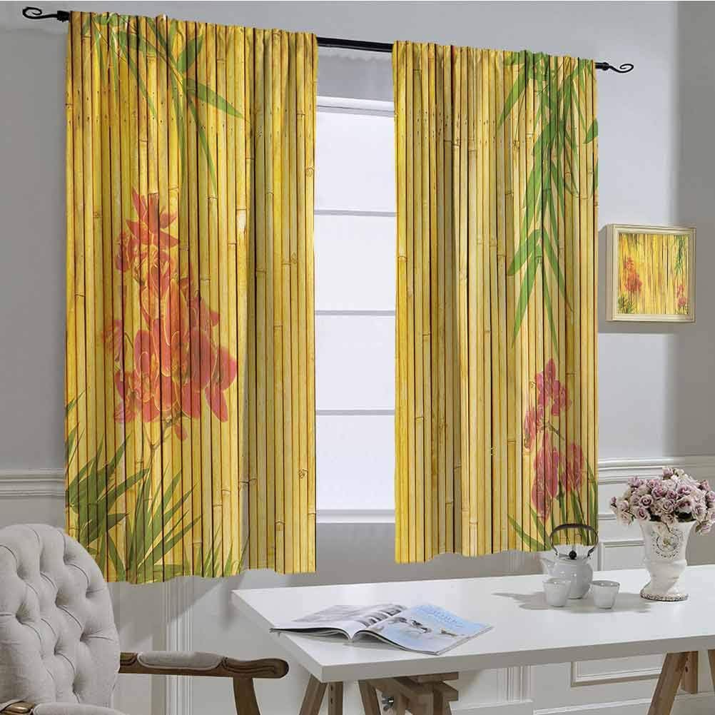 Amazon Com Bamboo House Decor Collection Modern Blackout Curtains Lotus Flower And Bamboo Background On Stems Tropical Plant Oriental Art Drapesfor Houseroom Blackout 2 Panel Red Green Gold W72 X L72 Inch Home