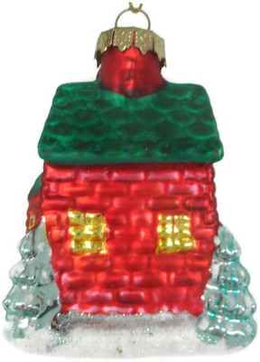 Glass Red Brick House Christmas Ornament Handpainted Collectible Tree Decor Ebay