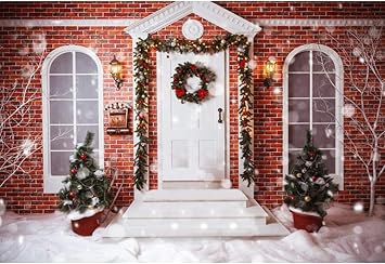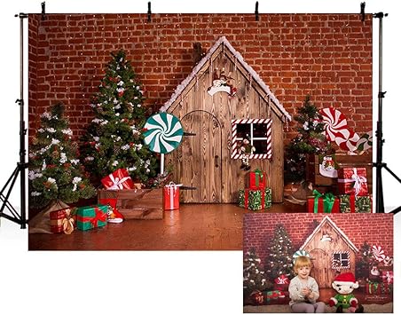 Amazon Com Muzi Red Brick Wall Photography Background Christmas Tree Wood House Decorations Backdrop For Photographers Baby Kids Photo Studio Props For Photos 6x5ft Xt 6867 Home Kitchen