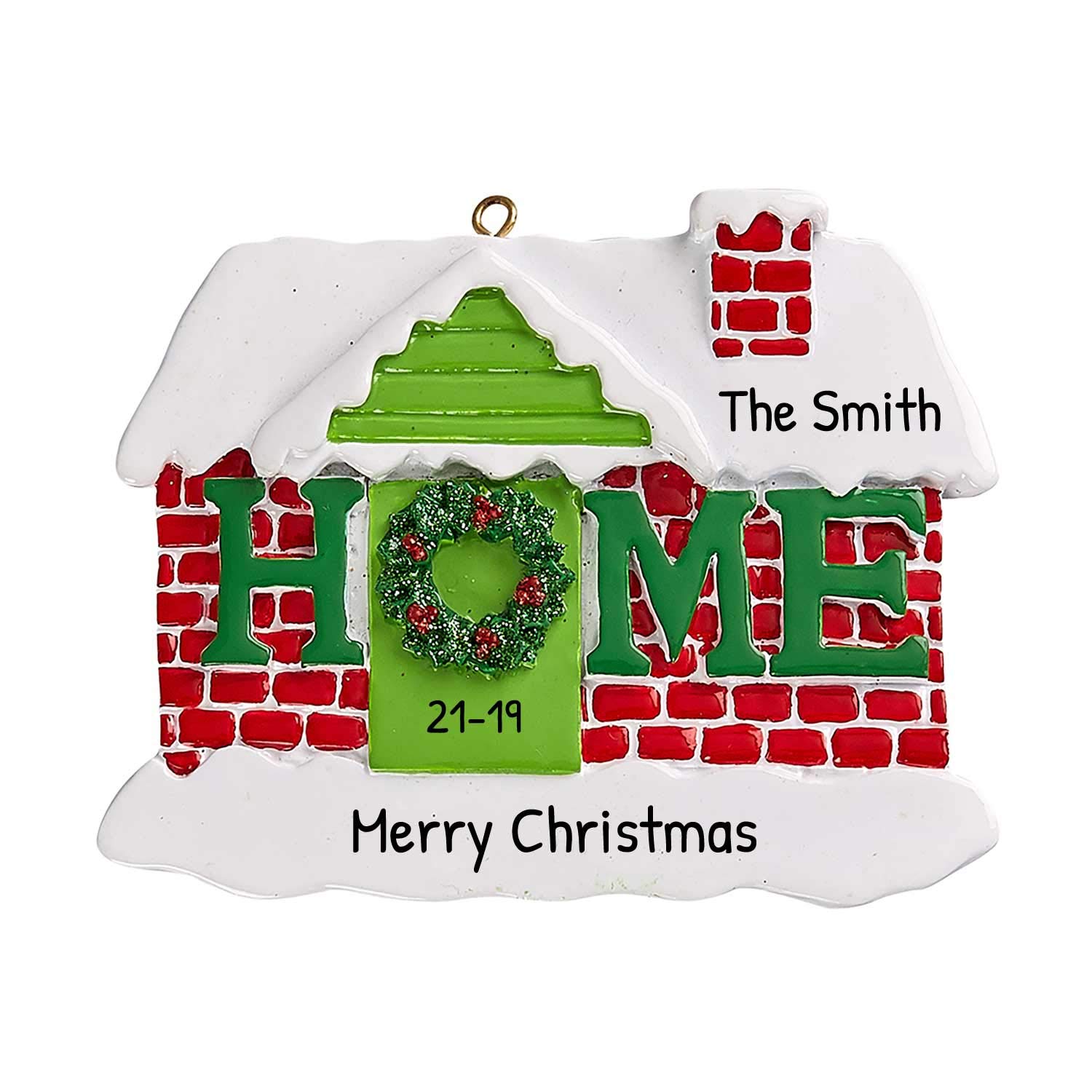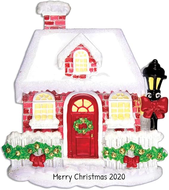 Amazon Com Personalized Home Christmas Tree Ornament 2020 New Red Brick House Our 1st Snowy Elegant Front First Family Neighbor Letters Wreath Door Window Ribbon Gift Year Free Customization Furniture Decor