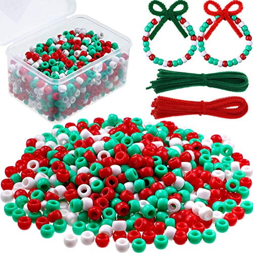 800 Pieces Christmas Pony Beads Plastic Pony Beads Red Green White Pony Beads And 50 Pieces Christmas Pipe Cleaners Chenille Stems For Christmas Decorations Diy Crafts Jewelry Making Walmart Com Walmart Com