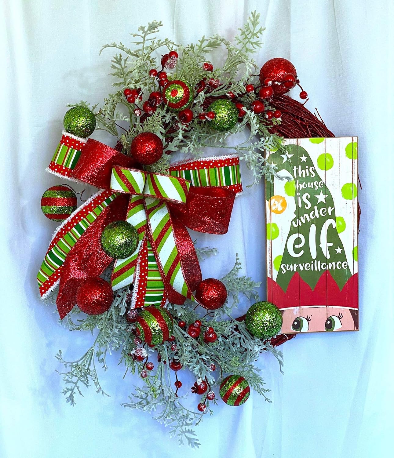Amazon Com Whimsical Elf Christmas Wreath Holiday Decoration Red White Lime Green Handmade