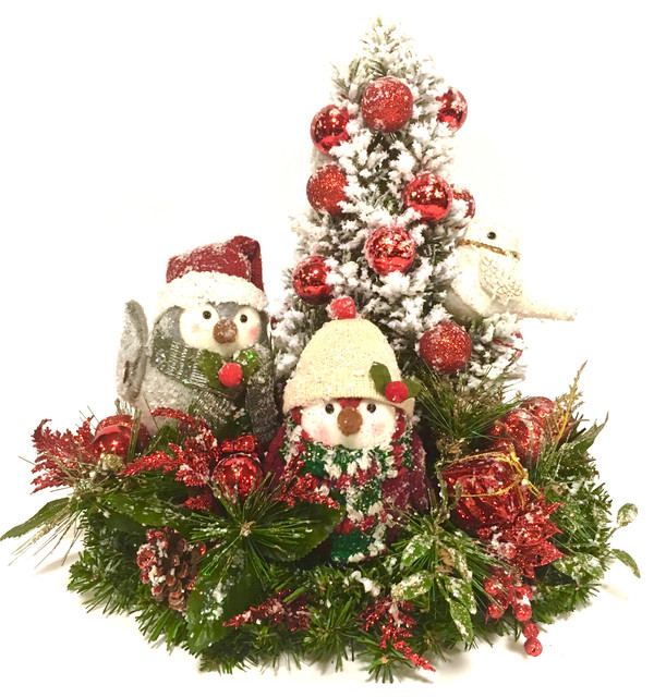 Sale Christmas Arrangement Owl Bird Tabletop Tree Winter Red Green White Contemporary Holiday Accents And Figurines By Sandy Newhart Designs