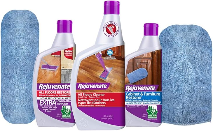Amazon Com Rejuvenate Floor Renewer Kit Includes All Floors Cleaner 32 Oz Floor Restorer 16oz Cabinet Furniture Restorer 13oz Plus 1 Microfiber Mitt Applicator And 1 Microfiber Bonnet Applicator Home Kitchen