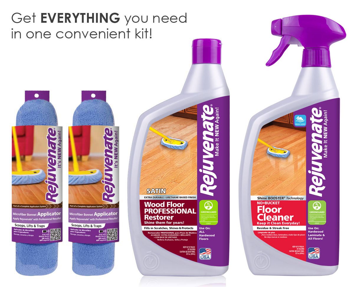 Rejuvenate Professional Wood Floor Restorer Satin Non Toxic Easy Mop On Application With Floor Cleaner And 2 Micro Fiber Mop Bonnets 4 Piece Kit 0678408991116 Buy New And Used Homes Books
