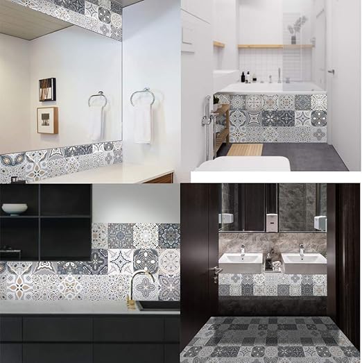 Amazon Com 24pcs Retro Pattern Wall Floor Tiles Stickers Pvc Bathroom Kitchen Waterproof Wall Stickers Home Decor Tv Sofa Wall Art Mural Pvc Wall Decals 10x10cm 3 94x3 94in Arts Crafts Sewing