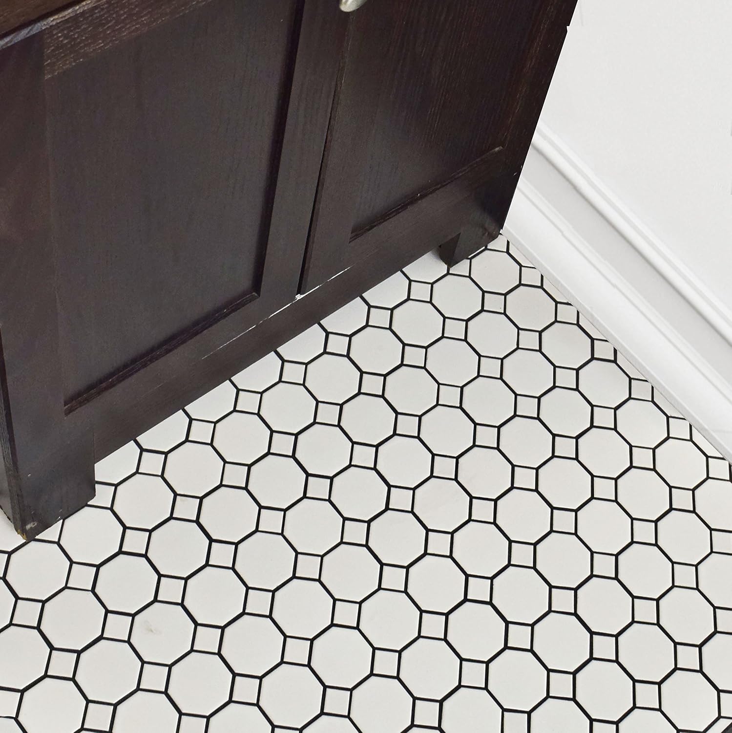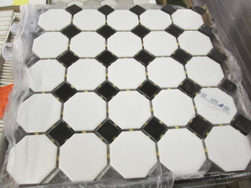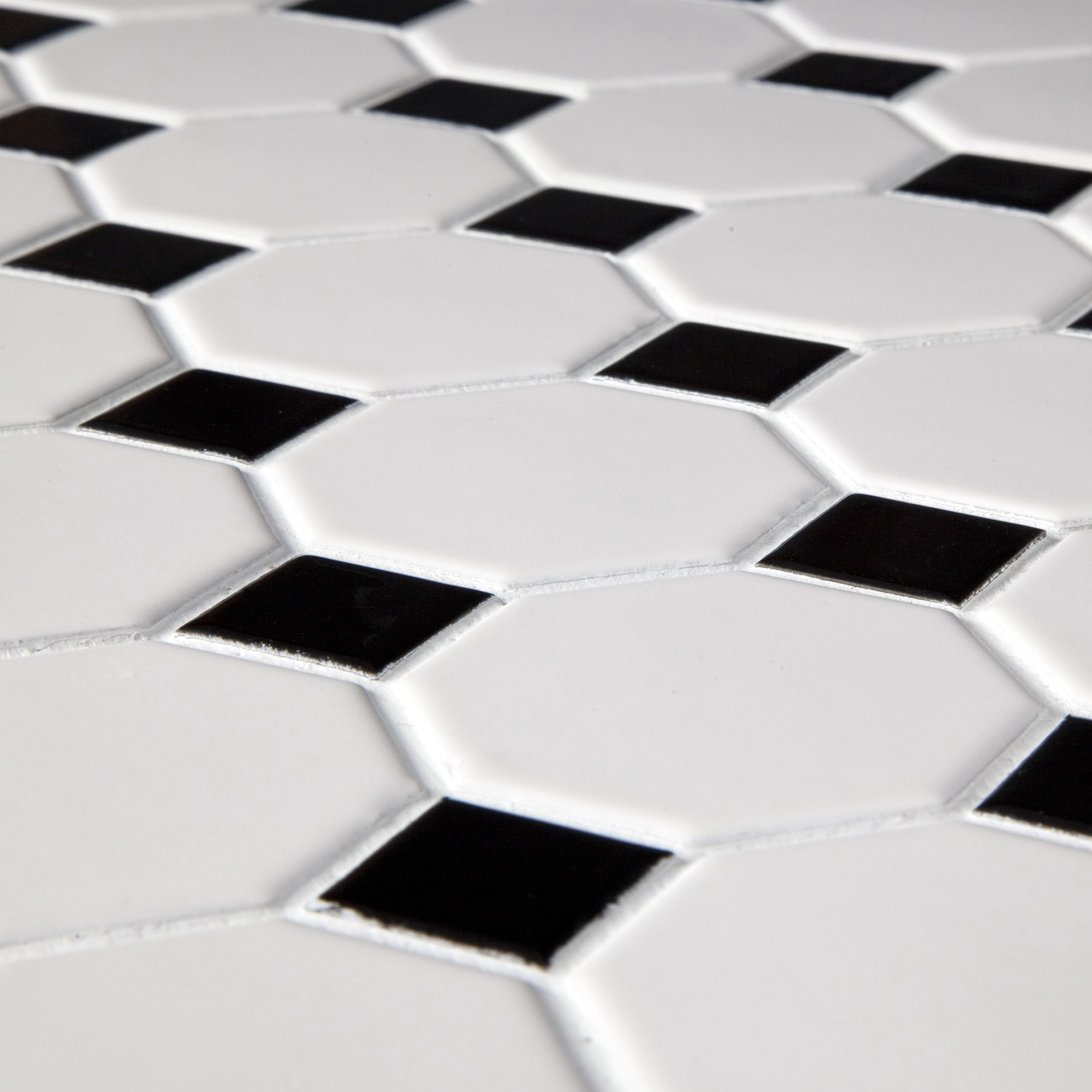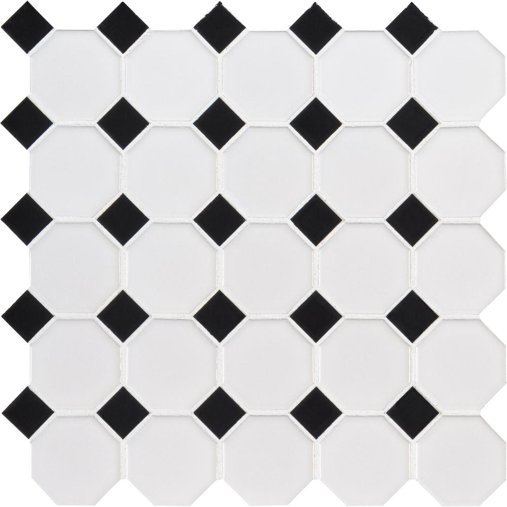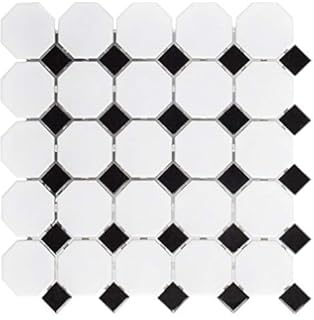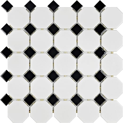Squarefeet Depot Retro Octagon Porcelain Mosaic Floor And Wall Tile 12 X 12 Matte White And Glossy Black Mixed Amazon Com