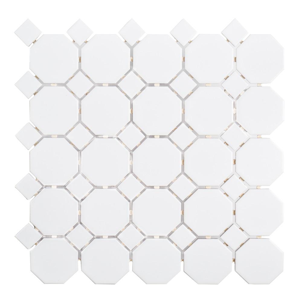 Jeffrey Court Retro Octagon White Dot 11 1 2 In X 11 1 2 In X 6 Mm Matte Porcelain Mosaic Floor And Wall Tile 96025 Porcelain Mosaic Mosaic Flooring Porcelain Mosaic Tile