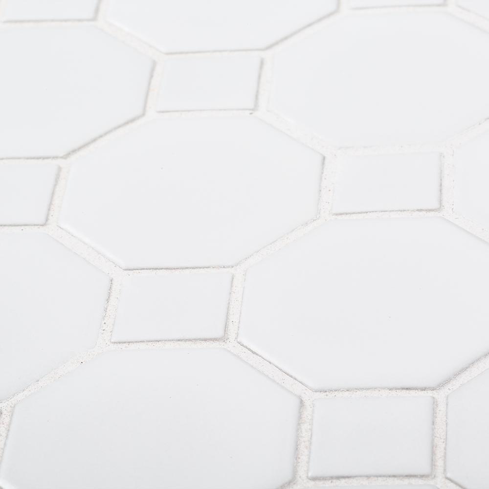 Octagon 2 Retro Porcelain White Matte Floor And Wall Mosaic Tile 11 5x11 5