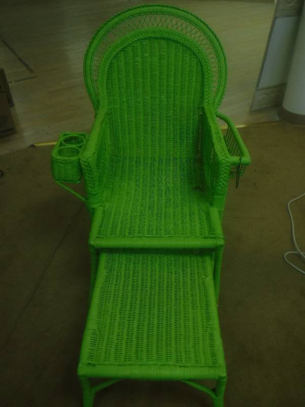 Painted A Vibrant Green Wicker Chair With Built In Cup Holder And Magazine Keeper With Foot Rest Baldwin City Estate Hockey Equipment Tv S Kc Royals Furniture Collectibles