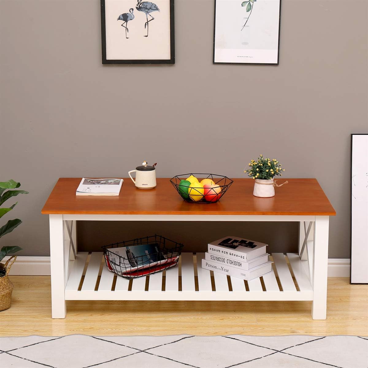 Amazon Com Coffee Tables For Living Room Amzcars Rustic Style Solid Wood Coffee Table With Storage Shelf Easy Assembly Farmhouse Furniture Kitchen Dining