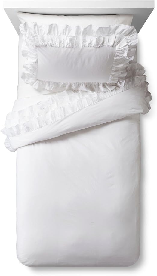Amazon Com Simply Shabby Chic White Pieced Mesh Lace Ruffle Duvet Set Twin Home Kitchen