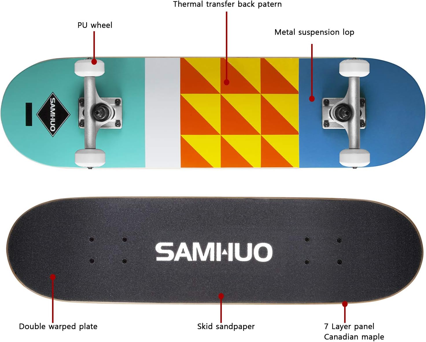 Amazon Com Samhuo Skateboards 31 X 8 Pro Complete Skateboard 7 Layer Canadian Maple Skateboard Deck For Extreme Sports And Outdoors Sports Outdoors