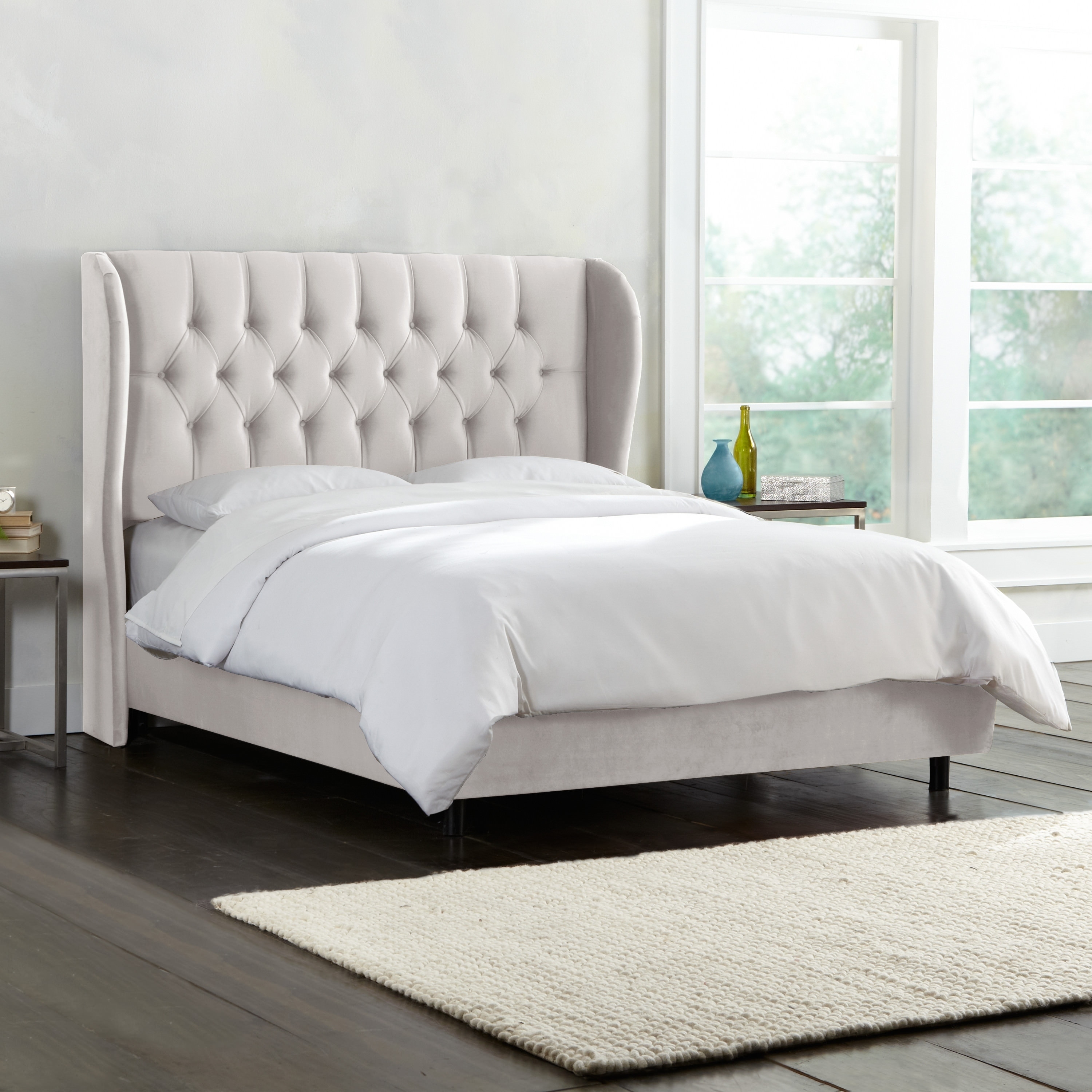Skyline Furniture Light Grey Velvet Tufted Wingback Bed Overstock 20603186