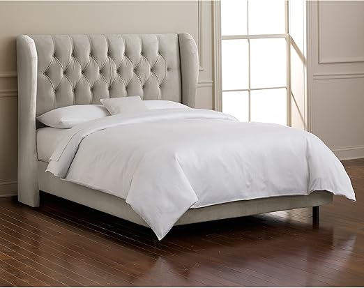 Amazon Com Skyline Furniture Velvet Queen Tufted Wingback Bed Light Gray Furniture Decor