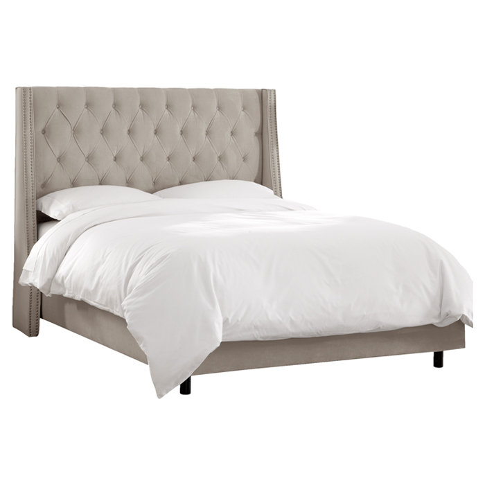Skyline Furniture Linen Grey Diamond Tufted Wingback Nail Bed Overstock 10898037