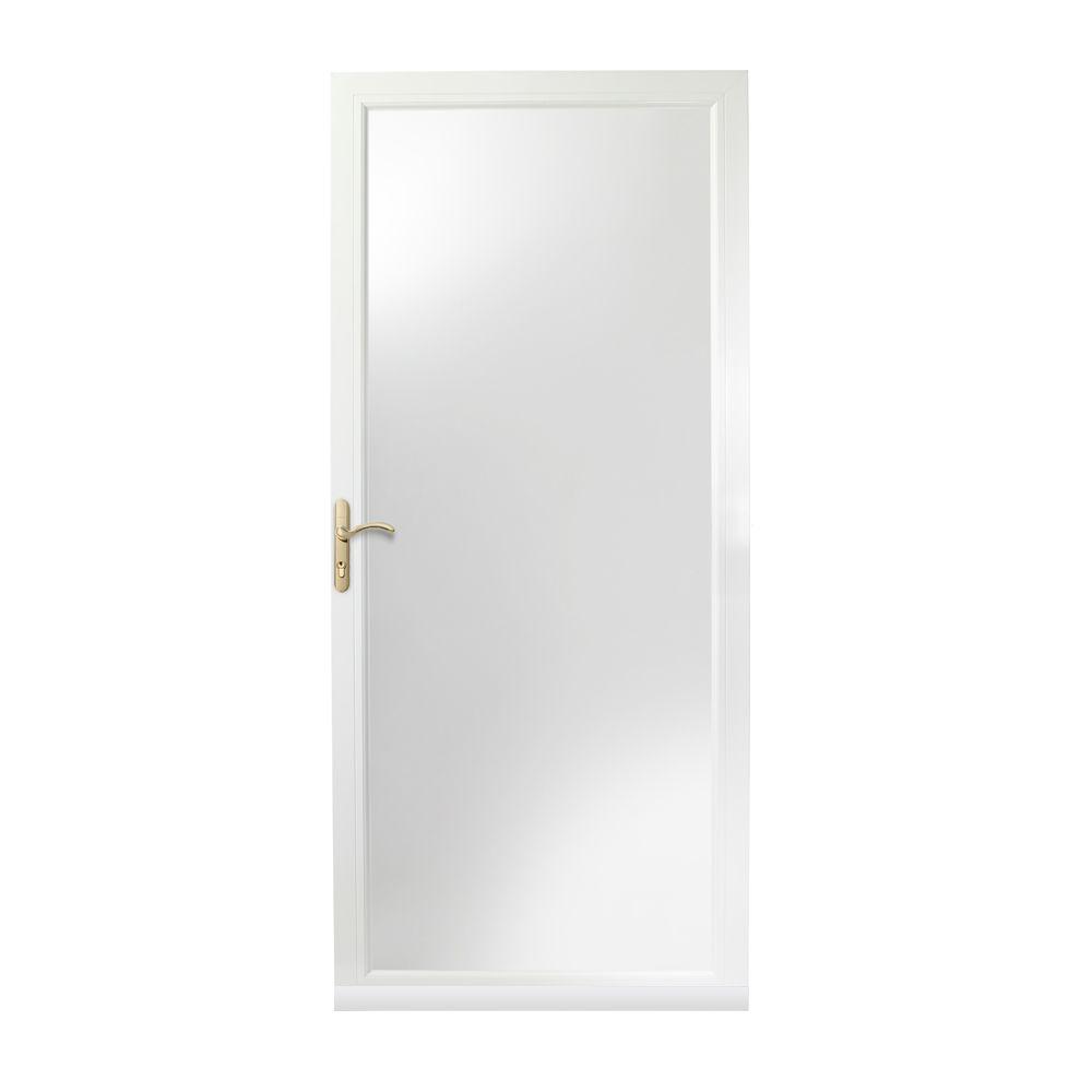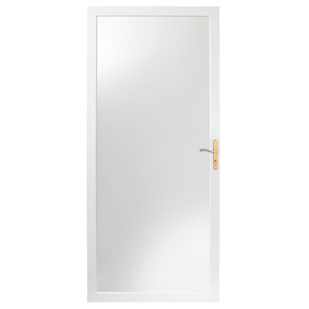 Emco 36 In X 80 In 300 Series White Universal Colonial Triple Track Aluminum Storm Door With Brass Hardware Aluminum Storm Doors Storm Door Glass Storm Doors