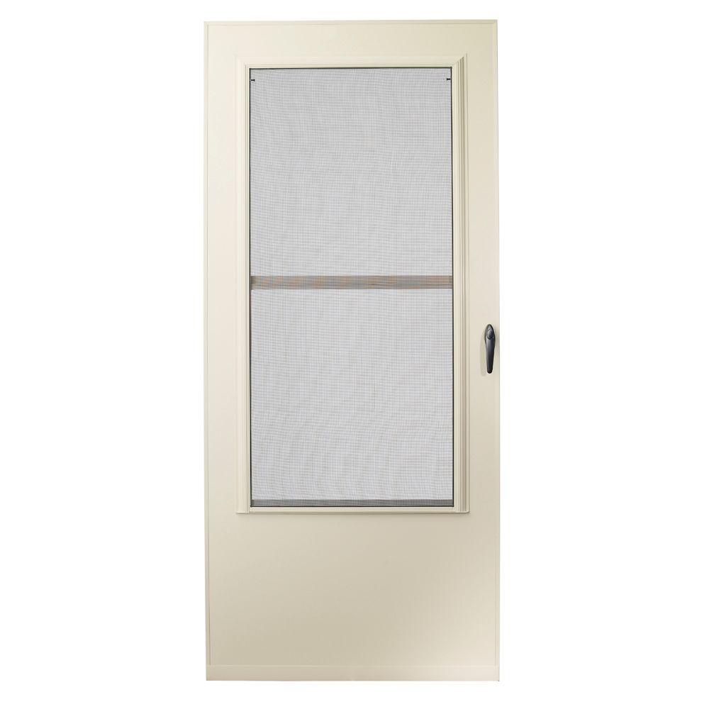 Emco 36 In X 80 In 400 Series Almond Universal Self Storing Aluminum Storm Door With Brass Hardware E4s36al The Home Depot